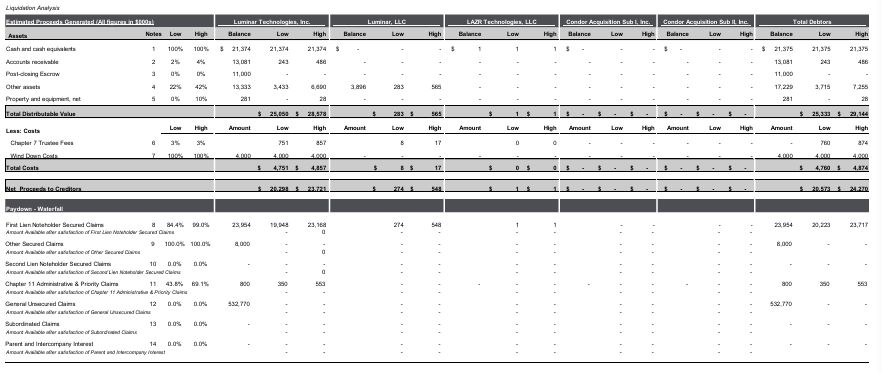 LUMINAR TECHNOLOGIES, INC. AND ITS AFFILIATED DEBTORS