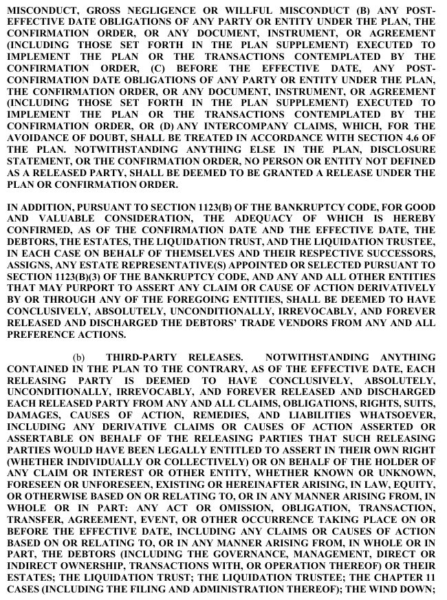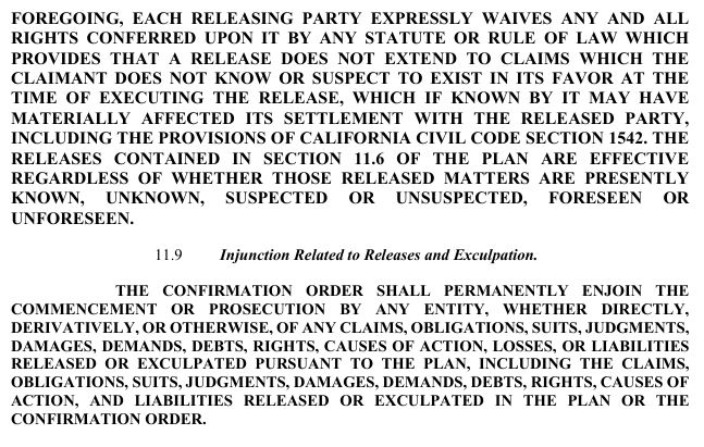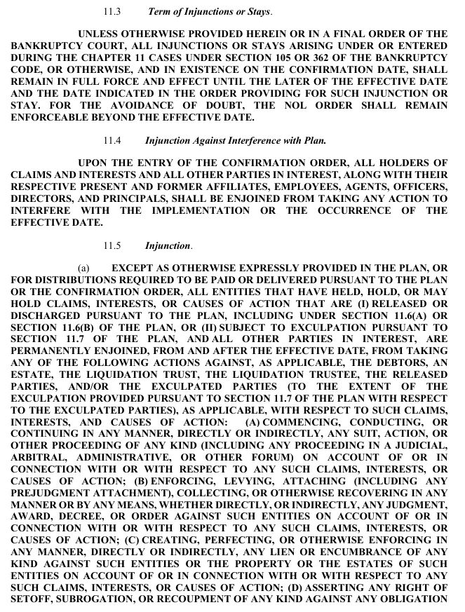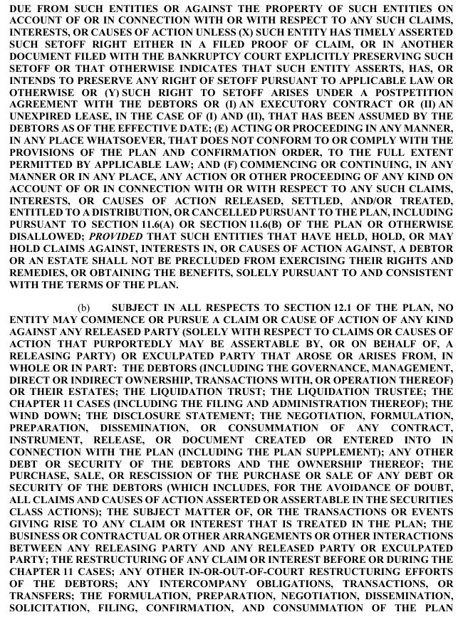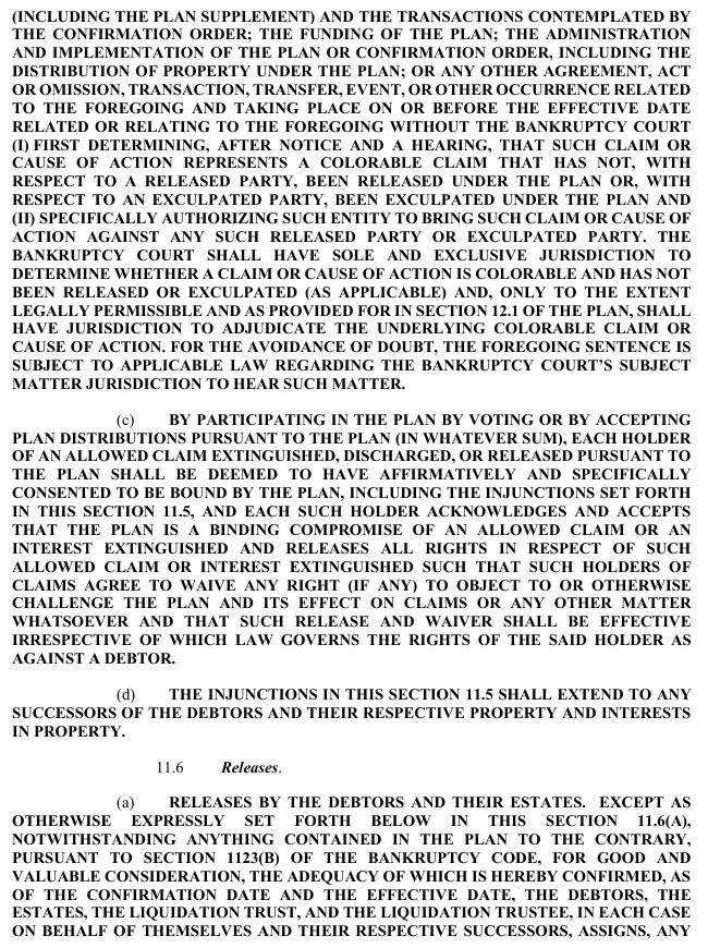 release, exculpation, and injunction provisions set forth in Article XI of the Plan and