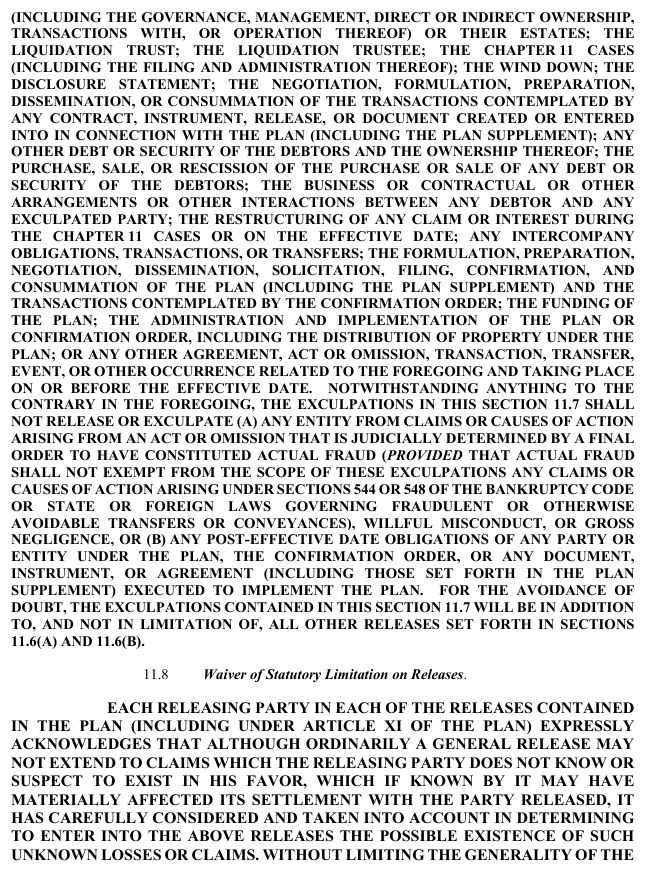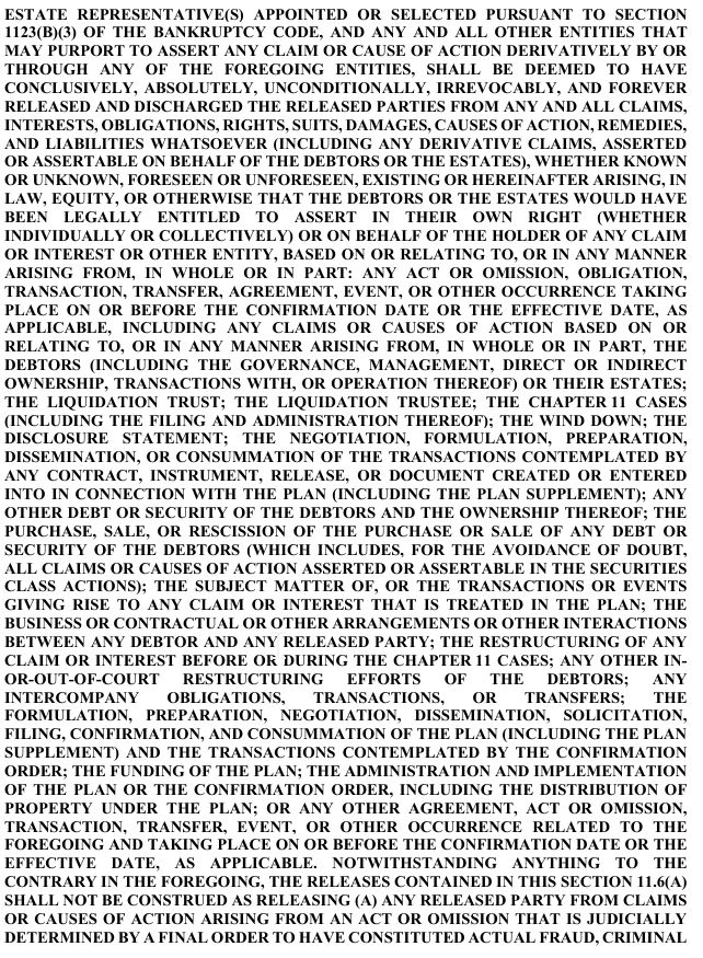 PLEASE BE ADVISED THAT SECTIONS 11.3, 11.4, 11.5, 11.6, 11.7, 11.8, AND 11.9 OF THE PLAN CONTAIN RELEASE, EXCULPATION, AND INJUNCTION PROVISIONS. YOU SHOULD REVIEW AND CONSIDER THE PLAN CAREFULLY