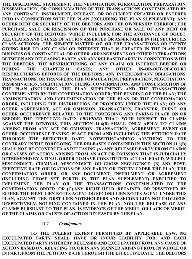 THE PLAN PROVIDES THAT THE FOLLOWING PARTIES ARE DEEMED TO GRANT THE RELEASES PROVIDED FOR THEREIN: (A) THE DEBTORS; (B) THE CREDITORS’ COMMITTEE AND EACH OF ITS MEMBERS, SOLELY IN THEIR CAPACITIES AS SUCH; (C) THE AD HOC NOTEHOLDER GROUP; (D) THE FIRST LIEN NOTES AGENT AND