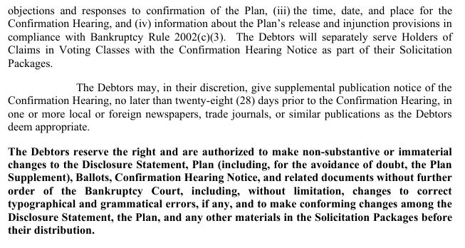 Hearing, in one or more local or foreign newspapers, trade journals, or similar publications as the Debtors deem appropriate. The Debtors reserve the right and are authorized to make non-substantive or immaterial changes to the Disclosure