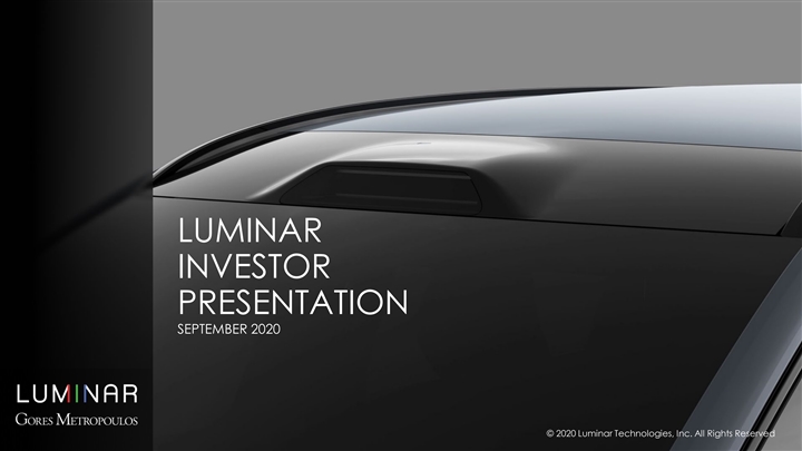 LUMINAR INVESTOR PRESENTATION SEPTEMBER 2020 © 2020 Luminar Technologies, Inc. All Rights Reserved LUMINAR INVESTOR PRESENTATION SEPTEMBER 2020 © 2020 Luminar Technologies, Inc. All Rights Reserved