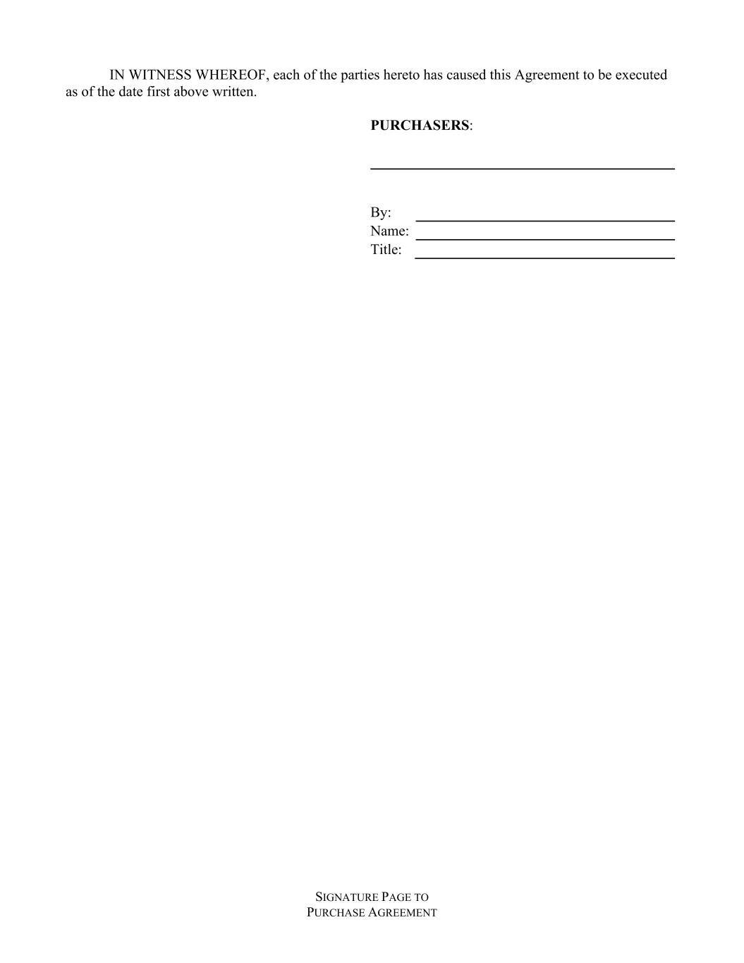 SIGNATURE PAGE TO PURCHASE AGREEMENT IN WITNESS WHEREOF, each of the parties hereto has caused this Agreement to be executed as of the date first above written. PURCHASERS: By: Name: Title: