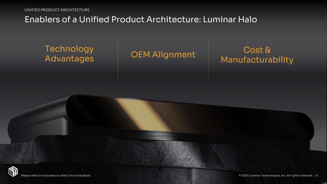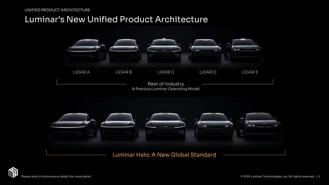 © 2025 Luminar Technologies, Inc. All rights reserved. | 5 LiDAR A LiDAR B LiDAR C LiDAR D LiDAR E Luminar Halo: A New Global Standard Rest of Industry & Previous Luminar Operating Model Luminar’s New Unified Product Architecture UNIFIED PRODUCT ARCHITECTURE Please refer to Footnotes on slide 3 for more detail.