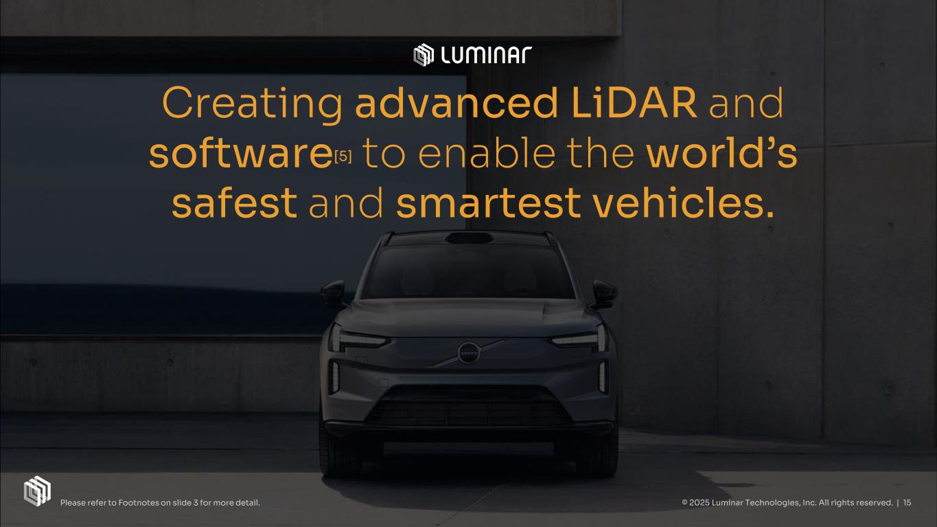 Creating advanced LiDAR and software[5] to enable the world’s safest and smartest vehicles. © 2025 Luminar Technologies, Inc. All rights reserved. | 15Please refer to Footnotes on slide 3 for more detail.