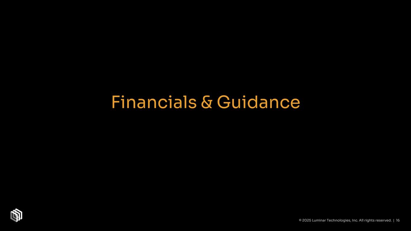 Financials & Guidance © 2025 Luminar Technologies, Inc. All rights reserved. | 16